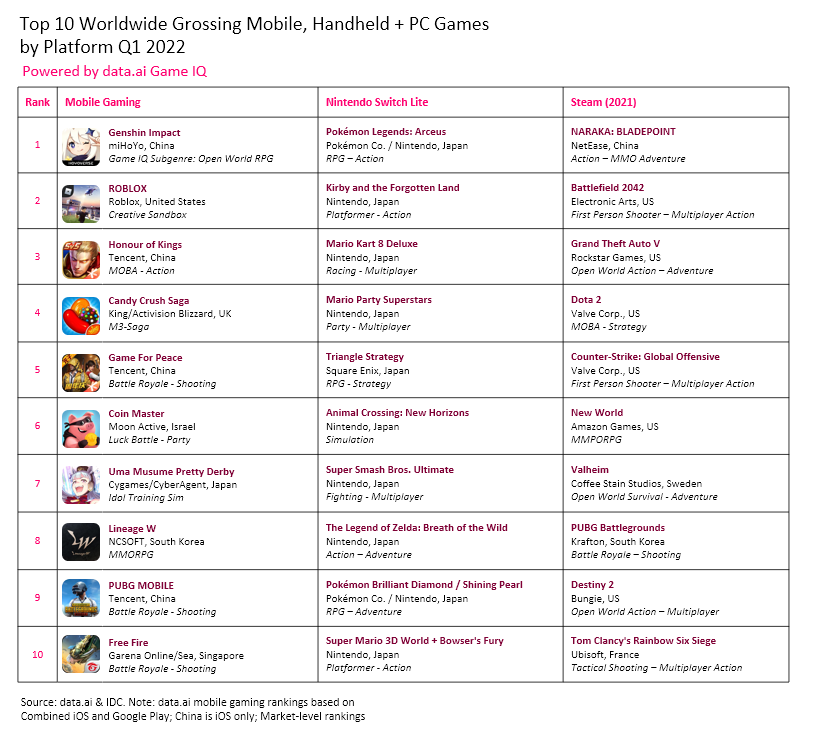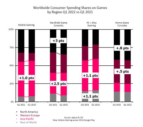 мобильные игры в 1 квартале 2022 года, но их доля рынка выравнивается по мере