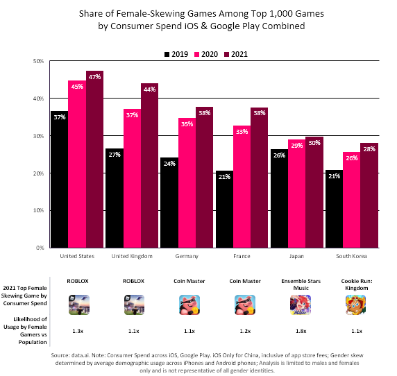 Например, среди 1000 лучших игр в США в 2021 году, 47% из них ориентированы на