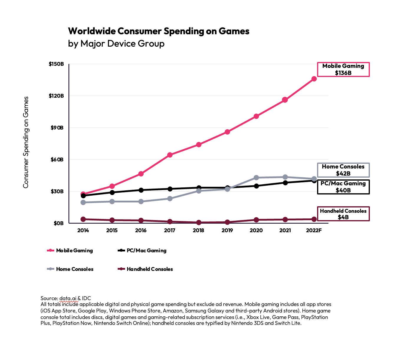 Согласно отчету, в 2022 году объем мобильных игр превысит $136 млрд, а также