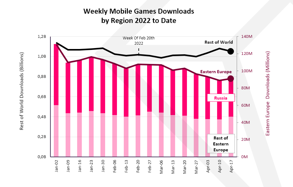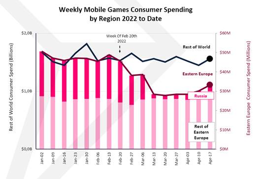 мобильные игры снизилась с 50% до 10% с февраля 2022 года. В марте и апреле