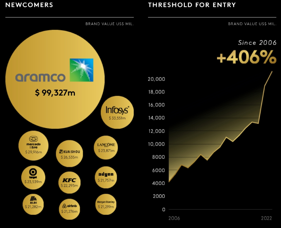 Top 100 Most Valuable Global Brands 2022 от Kantar, его стоимость за год