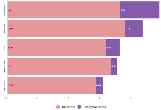 Analytics (второе место), у которой высоко оценен и клиентский сервис. Средние