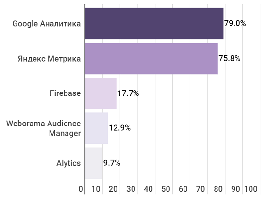 почти 80%. У следующей за ним Яндекс Метрики показатели не намного ниже.