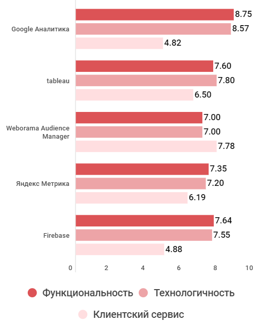 Лидер рейтинга Google Аналитика при самой низкой оценке за клиентский сервис