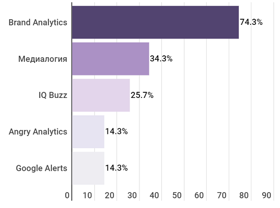 Абсолютный лидер рейтинга — Brand Analytics, его доля превышает долю