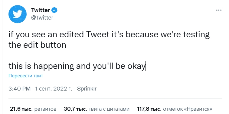 Социальная сеть Twitter начала тестировать редактирование постов. Об этом