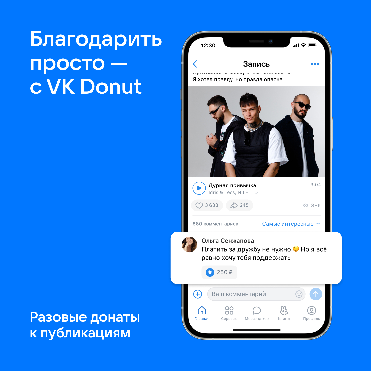 Пользователи теперь смогут отправлять разовые донаты авторам — чтобы