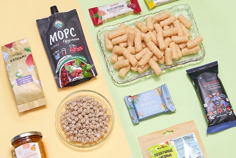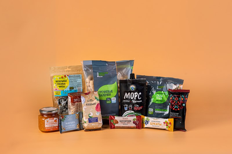 собранных из 35 товарных позиций, среди которых: хлебцы, ореховые смеси,