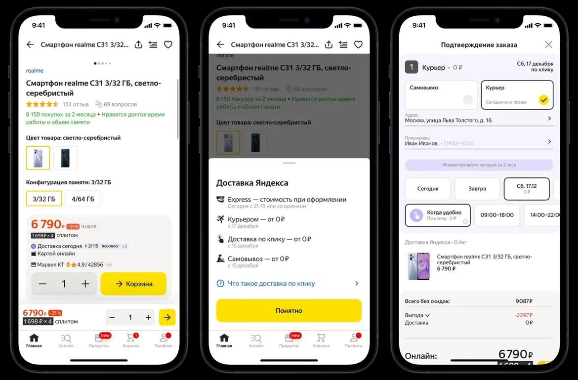 способ доставки и получения заказа, привязать карту и оплатить его «Сплитом»,