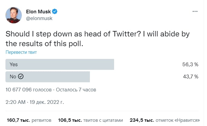 опрос, где спрашивает, нужно ли ему уйти с поста