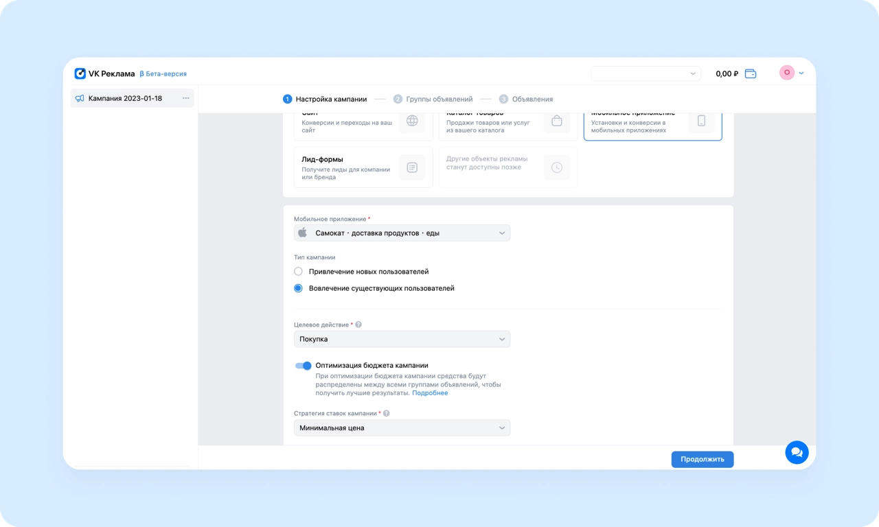Оптимизировать продвижение можно по цели «События внутри приложения».