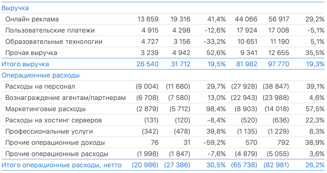 выручки во многом связан с развитием сегмента онлайн-рекламы, которая