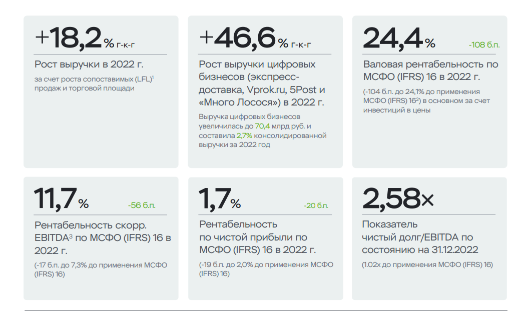 За весь 2022 г. чистая прибыль Х5 выросла на 7,7% — до 52,25 млрд