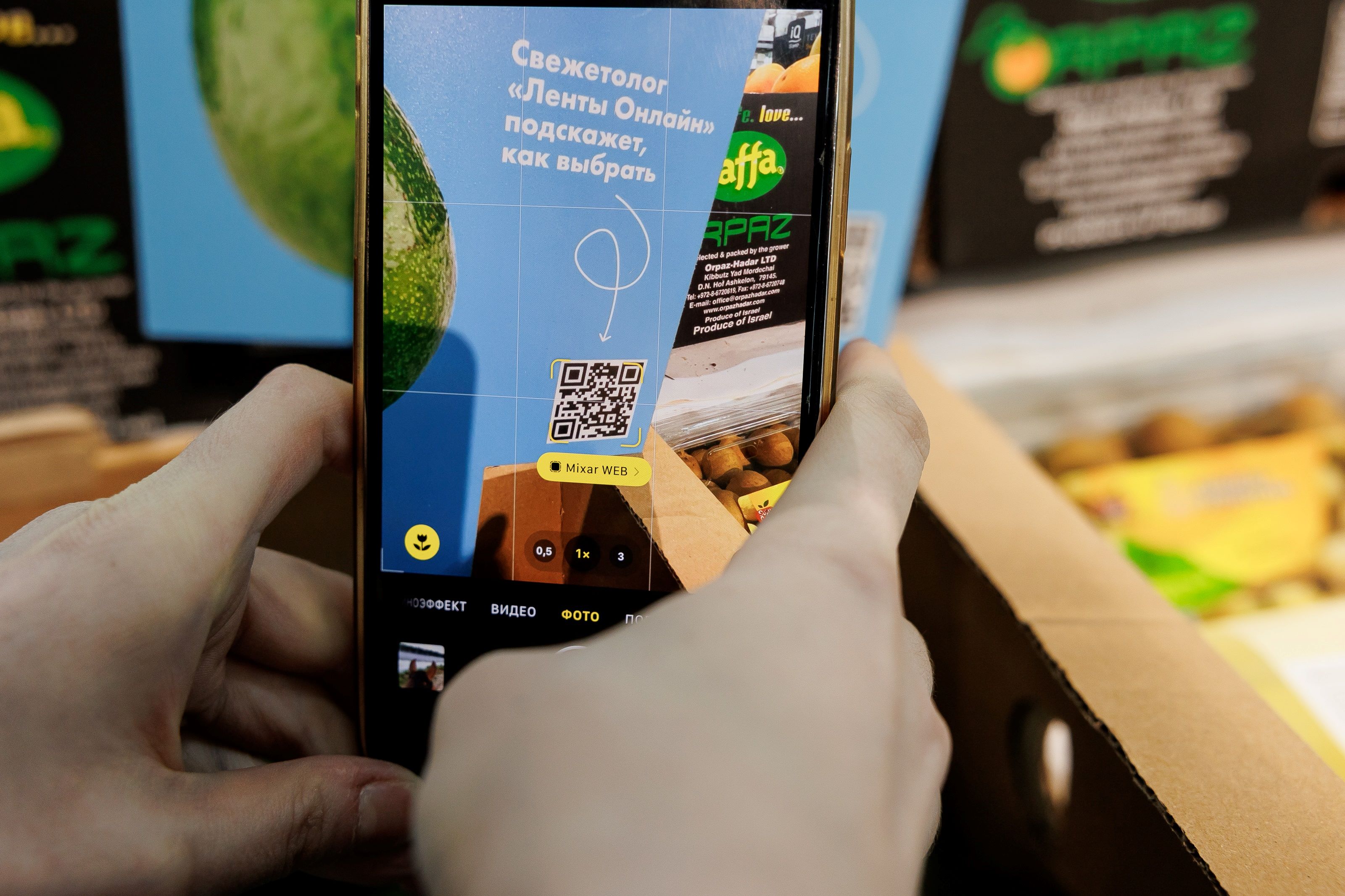 отсканировать специальный QR-код в зоне «Фрукты и овощи». «Свежетолог»