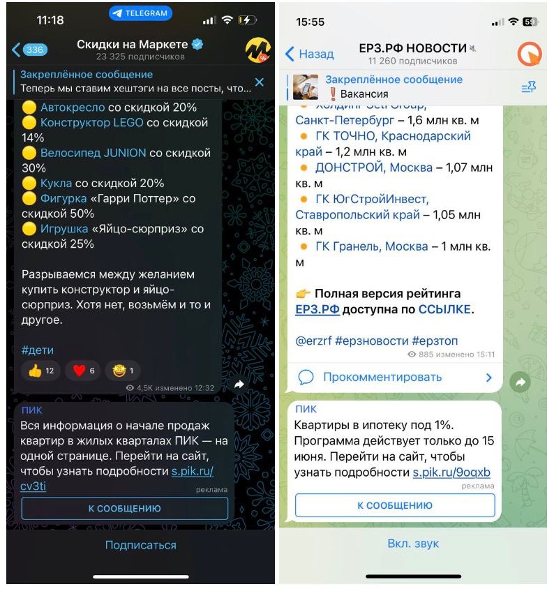 Российский девелопер ПИК получил доступ к функции Telegram Ads и начал