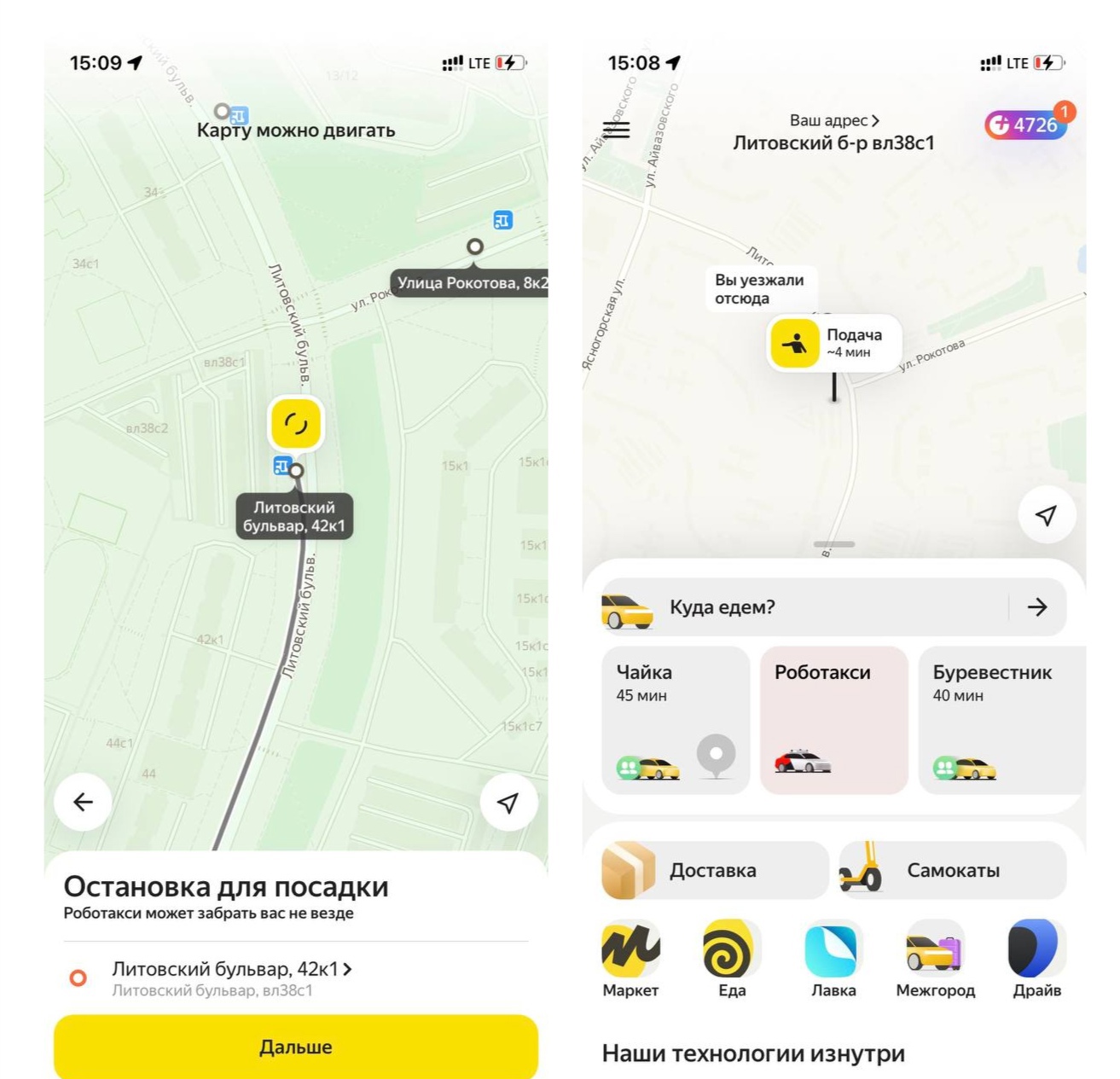 которой можно выбрать точки посадки и высадки и вызвать машину. Всего в Ясенево