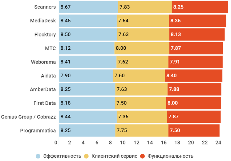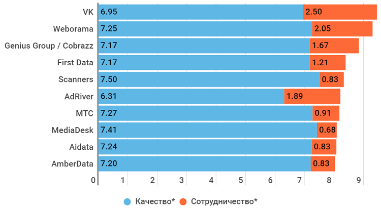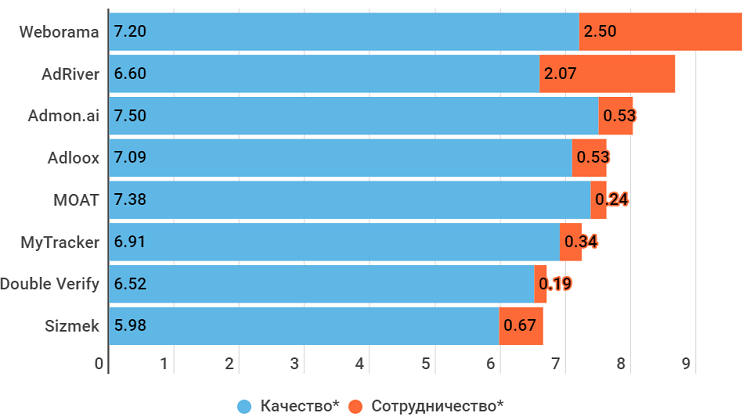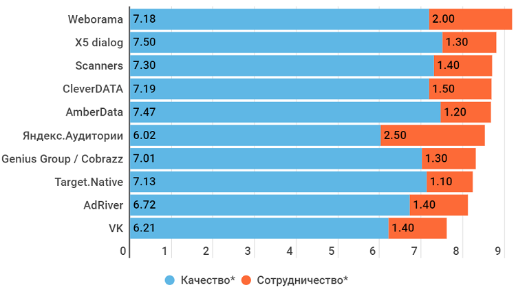 место Weborama достаточно высокие баллы и за качество, и за сотрудничество, то