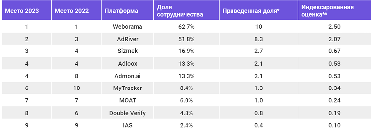 Adloox и MOAT выиграли за счет высокой оценки качества работы.