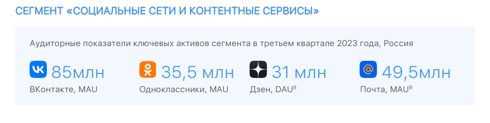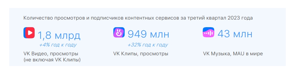 «За девять месяцев 2023 г. выручка и аудиторные показатели VK значительно