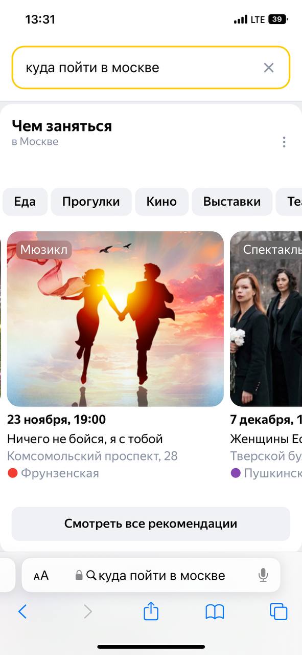 В «Яндекс Поиске» появился новый блок с рекомендациями событий и мест в