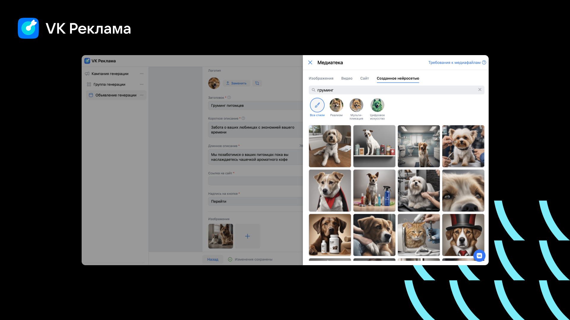 В «VK Рекламе» появилась галерея сгенерированных нейросетью изображений для рекламы сообществ