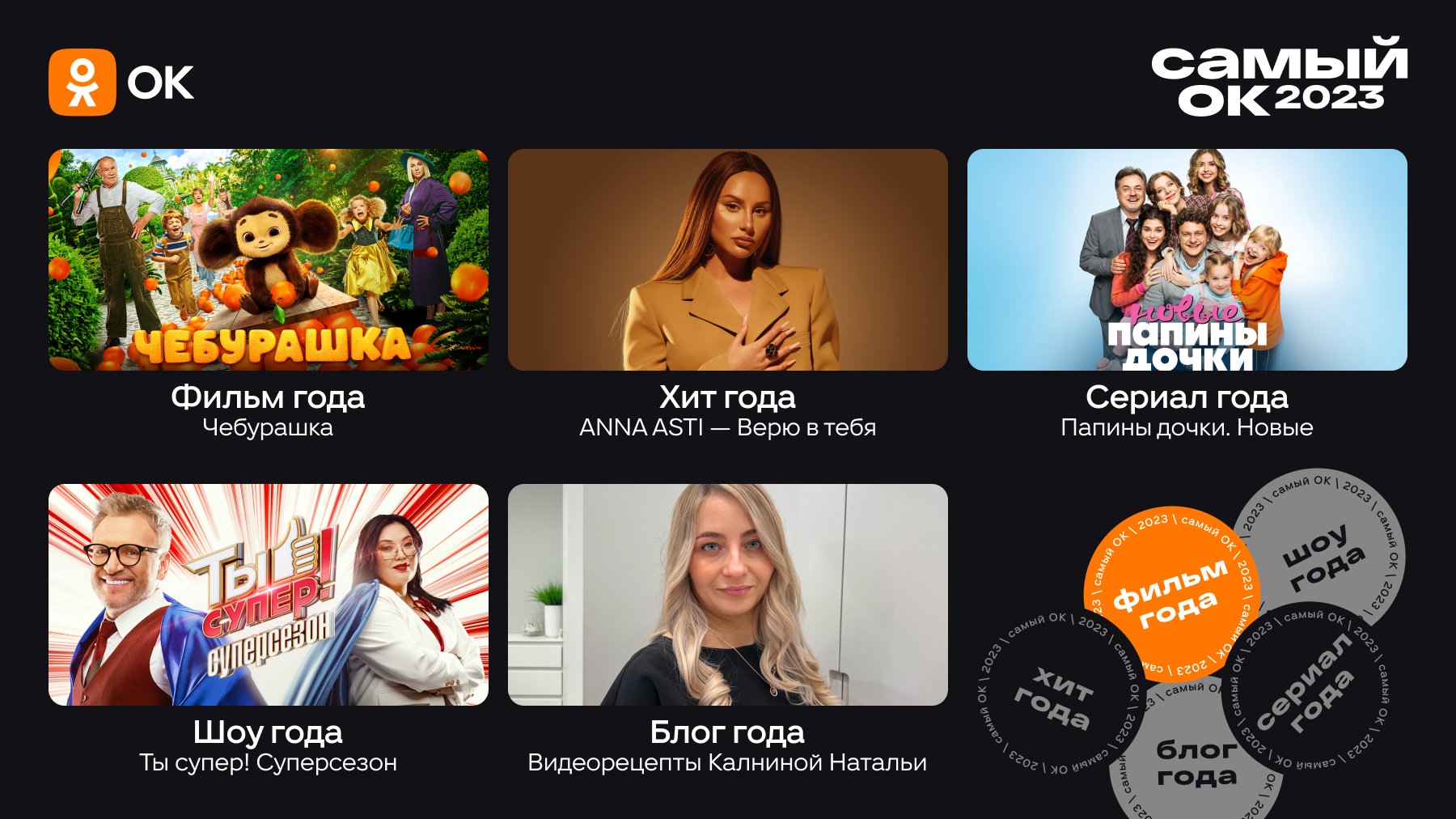 «Чебурашка» и «Папины дочки. Новые» стали лучшими проектами в 2023 году по версии ОК
