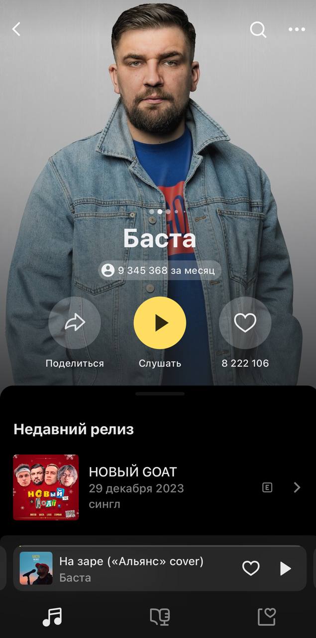 Баста стал самым прослушиваемым артистом на «Яндекс Музыке»