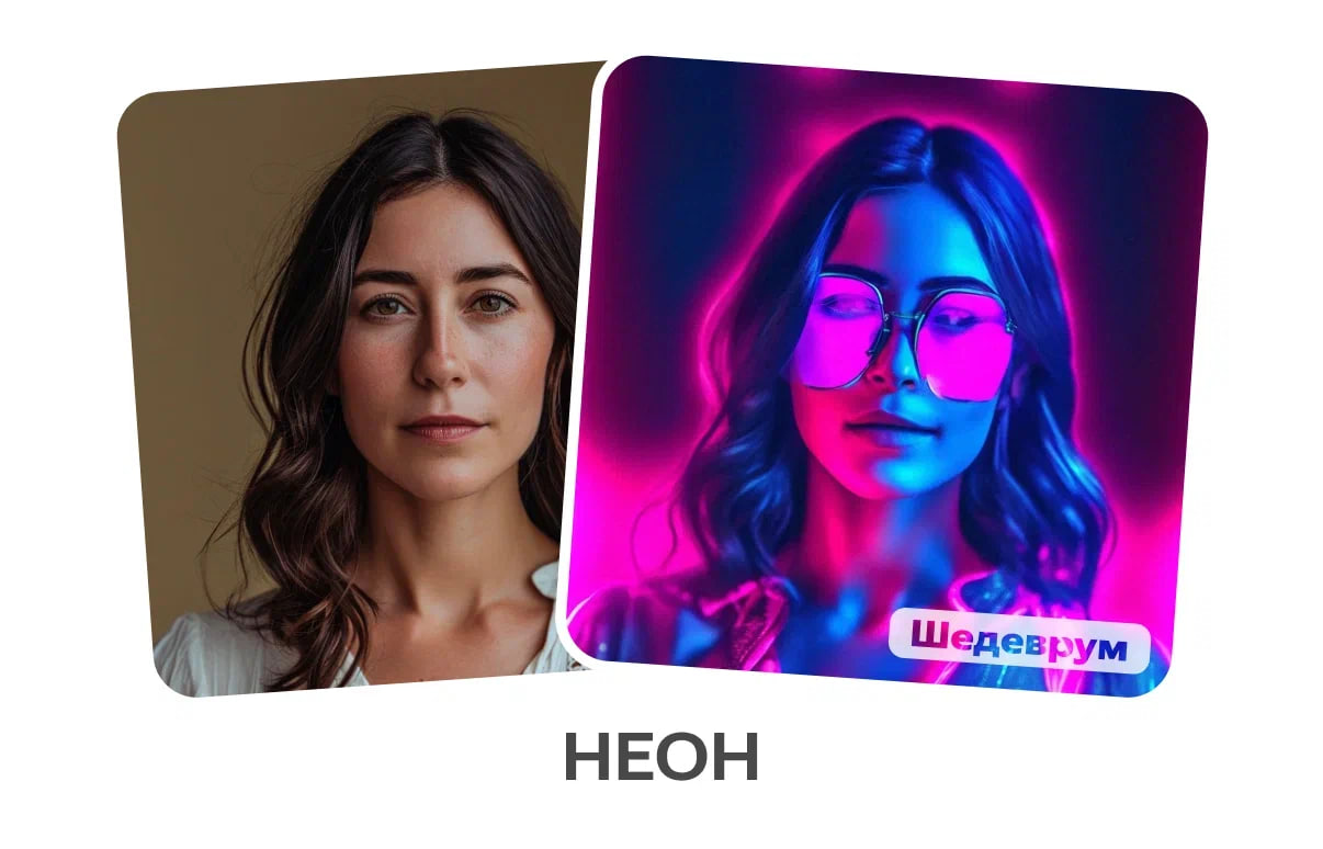 добавить на них зимнюю атмосферу, неоновое свечение и цветы. Нейросеть