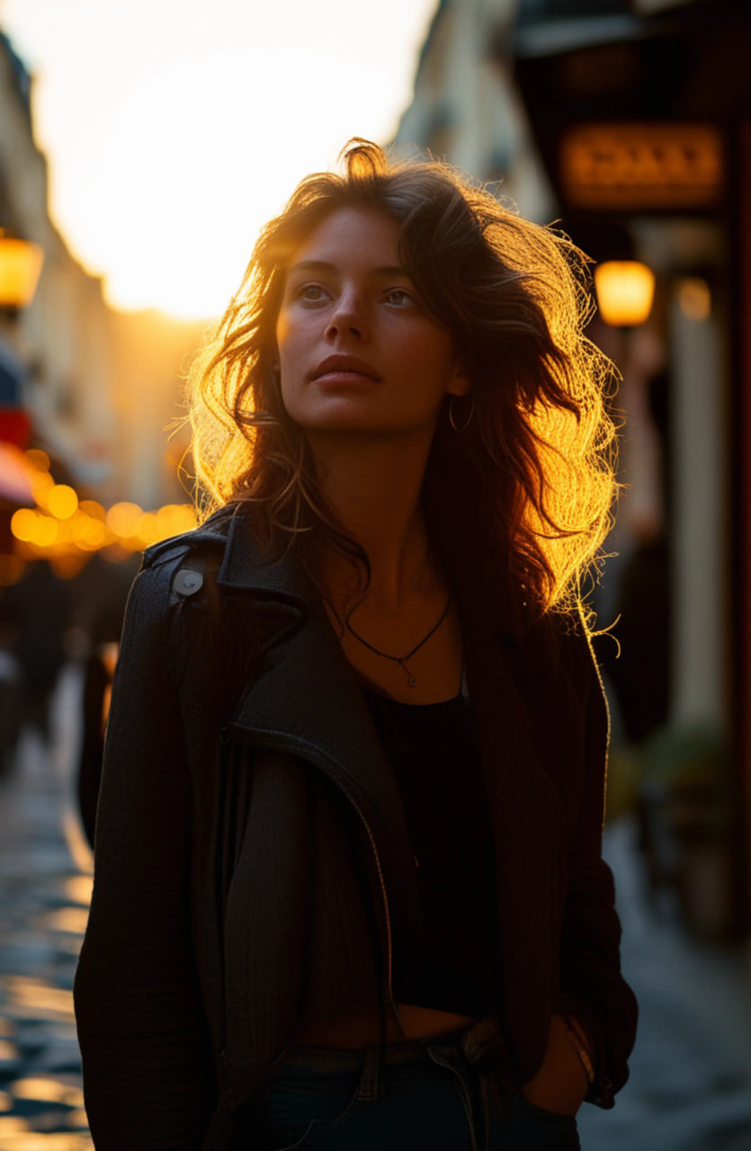 Промт: снимок в полный рост, француженка, фотография, фон французских улиц,