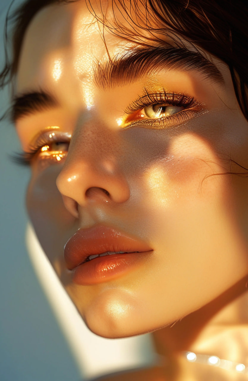 ресницы, низкая насыщенность, реальные детали кожи, четкие поры и тонкие линии,