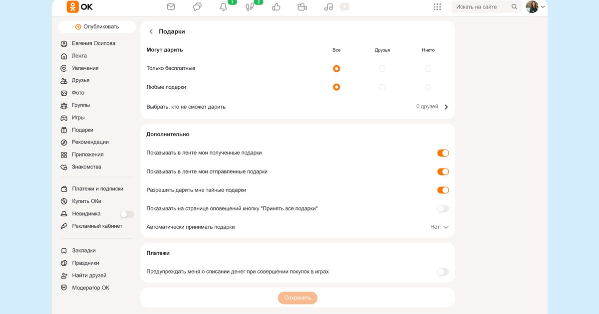 «Одноклассники» позволят пользователям отказаться от виртуальных подарков
