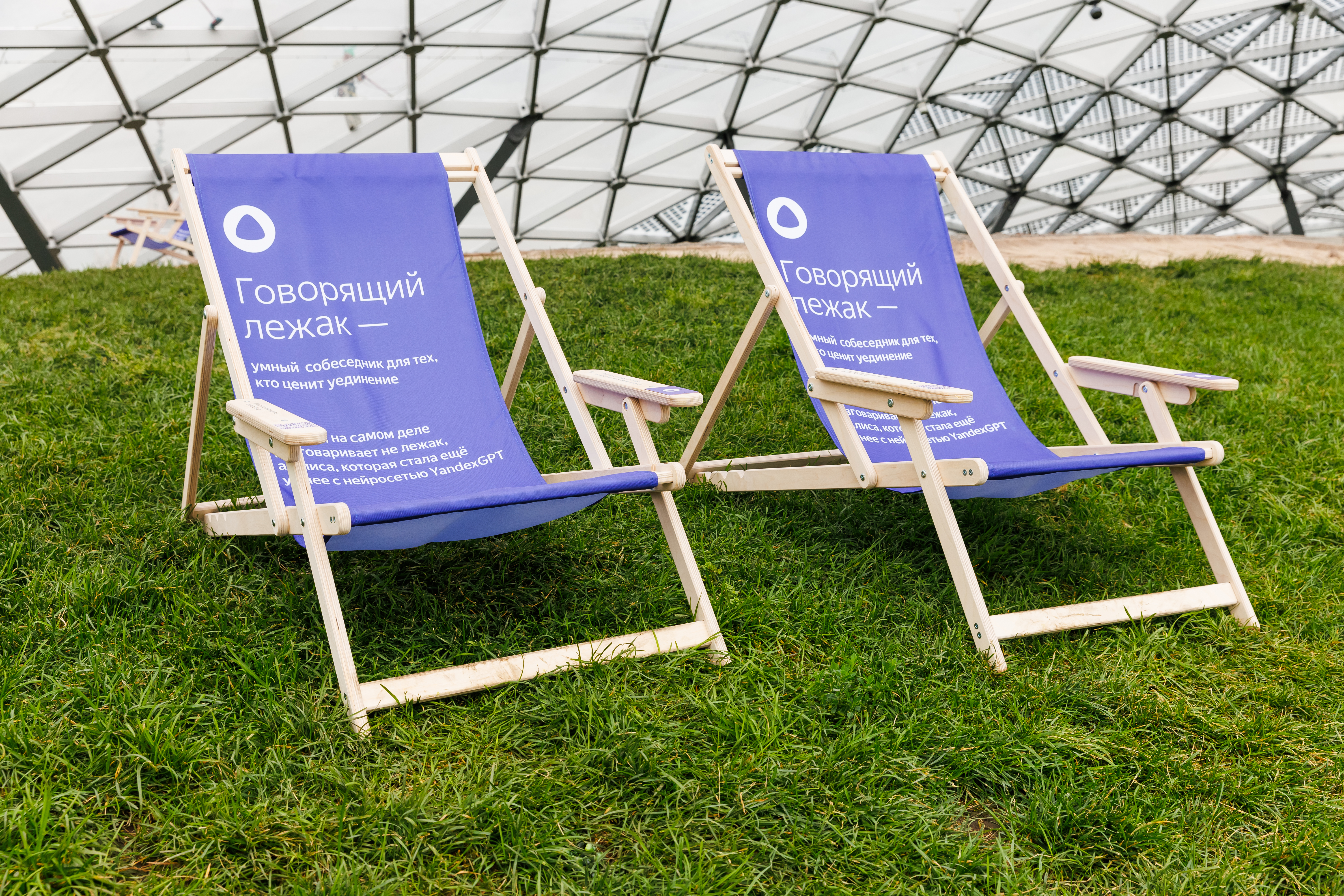 Дополняют коллаборацию «говорящие» лежаки для отдыха. Это интерактивные