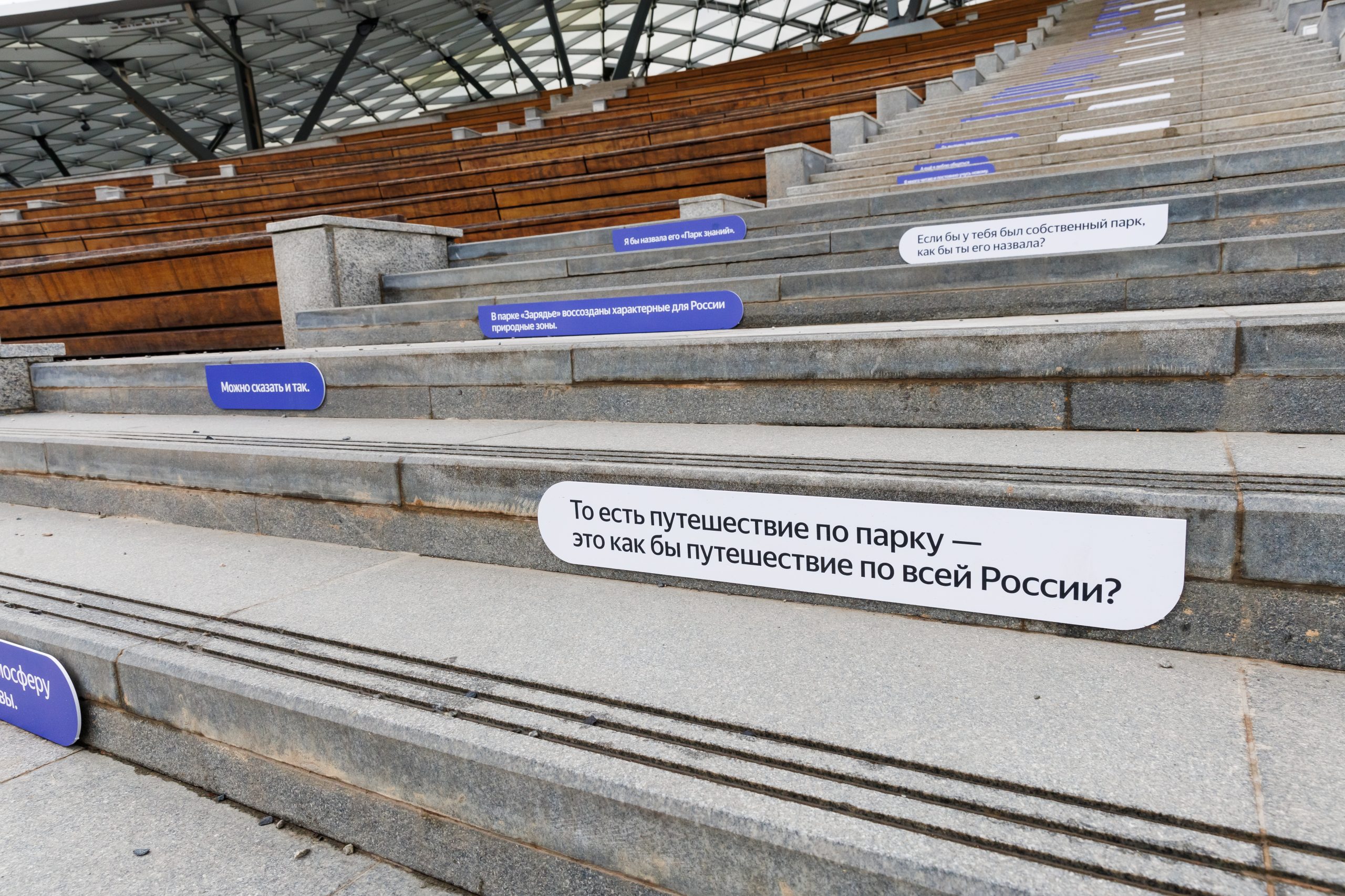 Также на лестницах Большого и Малого амфитеатра «Зарядья» были установлены