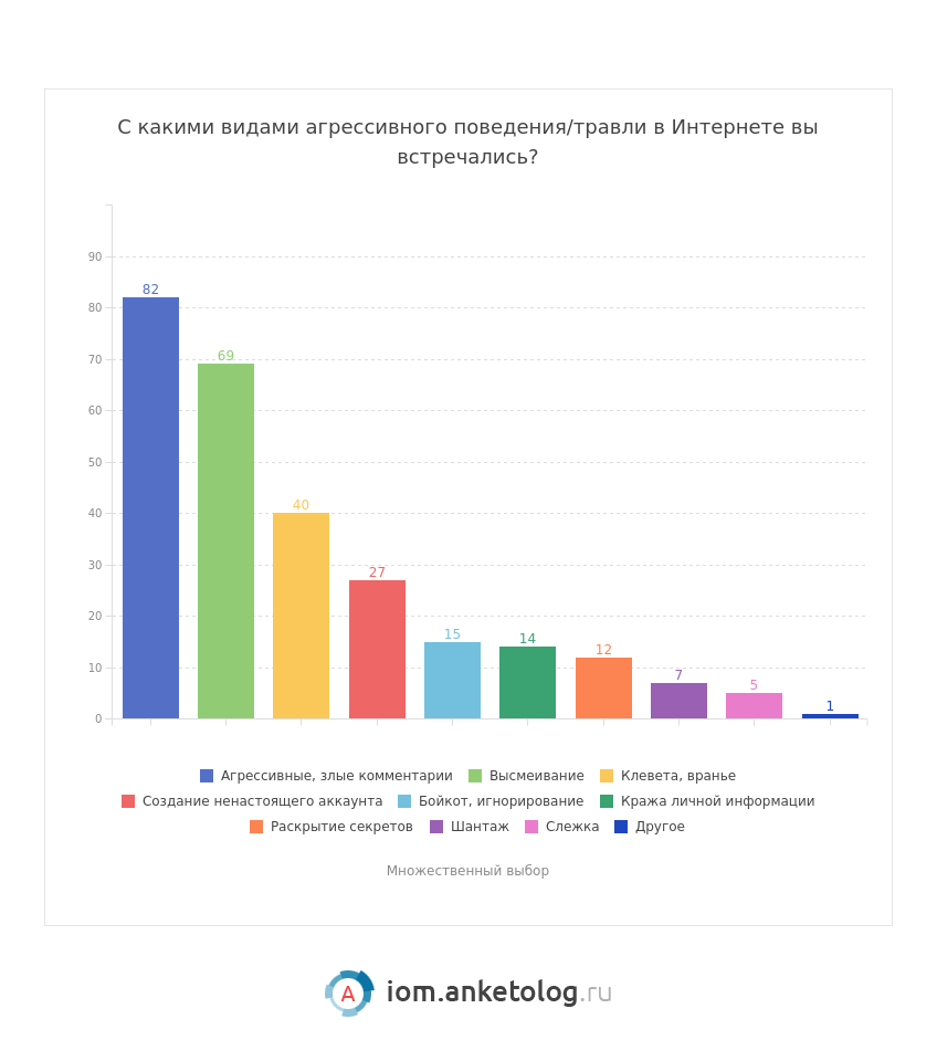 агрессивные и злые комментарии (82%), высмеивание (69%), ложь и клевета
