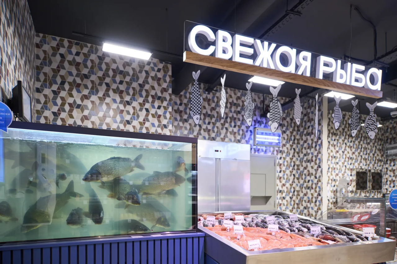 живой рыбой и устрицами, а также стенды партнеров. Покупателям предложат