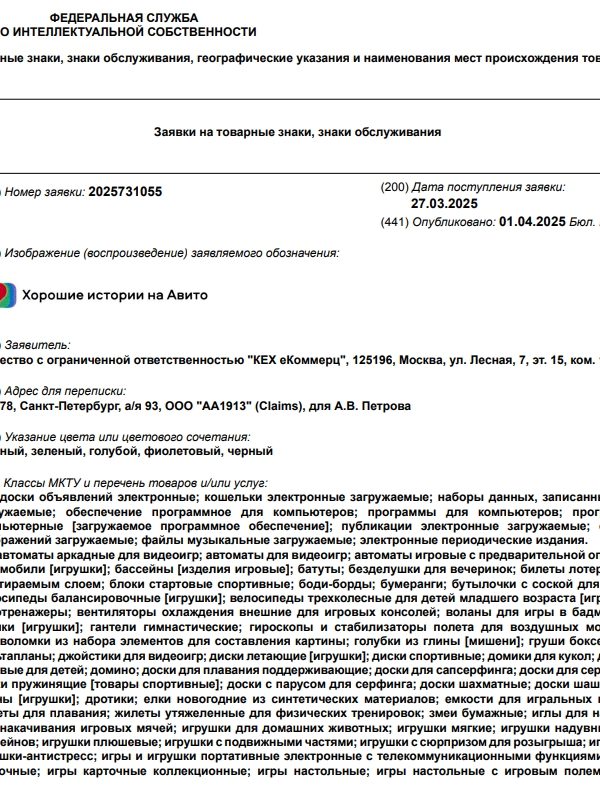 01 Апреля 2025 | 16:18 «Авито» регистрирует новые товарные знаки для «сюрприза» ООО «КЕХ еКоммерц» (основное юрлицо сервиса «Авито») подал в Роспатент три ... Подробнее