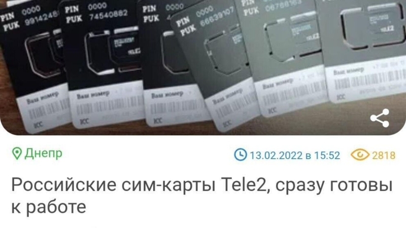 На украинских сайтах объявлений оптом продаются российские сим-карты, выяснило РИА Новости.