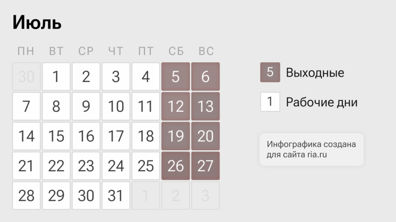 Рабочий календарь в июлеЧитать ria.ru в ДзенОглавление