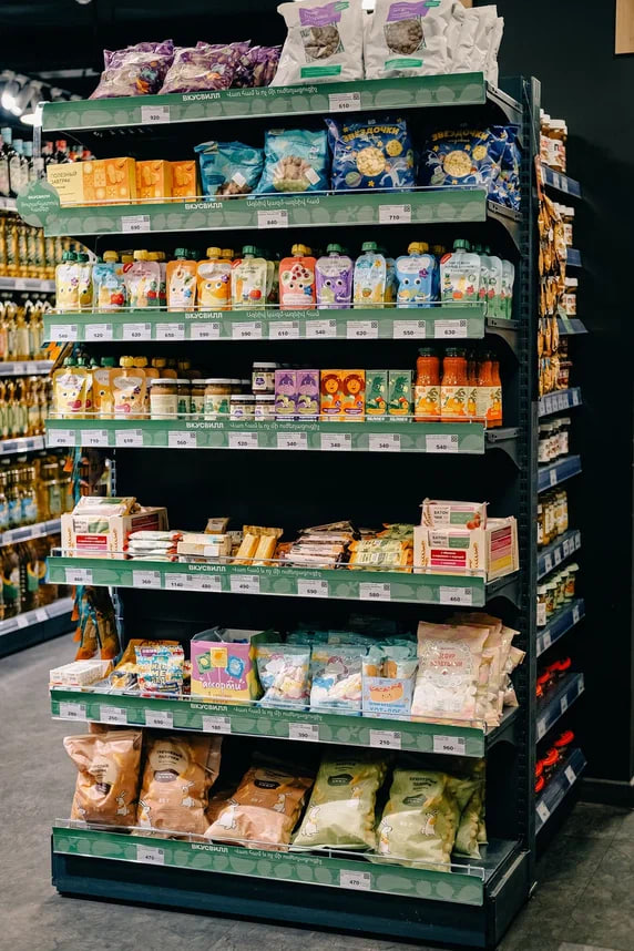 Ассортимент включает в себя около 100 позиций из разных категорий: бакалея,