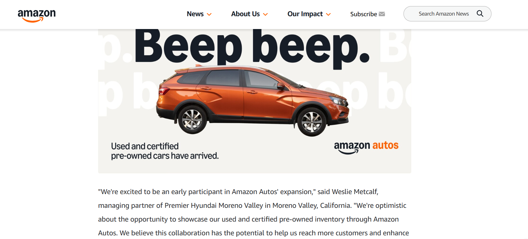 пока продает только автомобили марки Hyundai. Amazon Autos — отдельный сегмент
