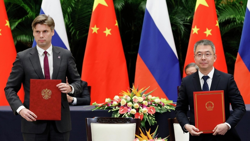 Генеральный директор госкорпорации «Роскосмос» Дмитрий Баканов и председатель Комиссии по китайской навигационной спутниковой системе Гуань Цзюнь на церемонии подписания российско-китайских документов по итогам 30-й регулярной встречи глав правительств РФ и КНР в Ханчжоу. 3 ноября 2025Читать ria.ru в ДзенMaxTelegram