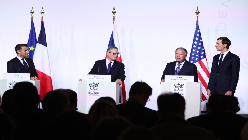 Эммануэль Макрон, Кир Стармер, Стив Уиткофф и Джаред Кушнер на пресс-конференции «коалиции желающих» в Елисейском дворце. Архивное фотоЧитать ria.ru в ДзенMaxTelegram