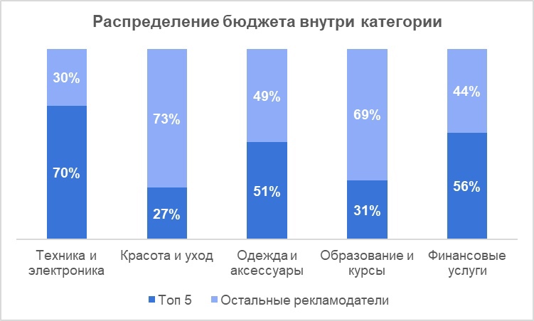 более половины всего бюджета категории. Например, в сегменте «Техника и