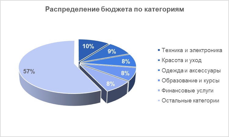 «Одежда и аксессуары», «Образование и курсы», «Финансовые услуги») потратили на