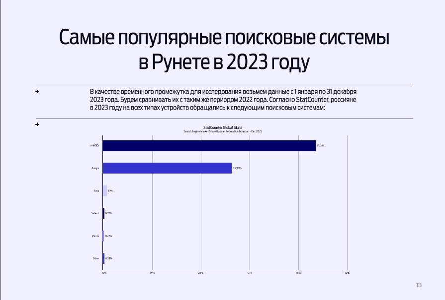 Google, наоборот, снизил свою долю с 55,5% до 41%. Активный рост компании из РФ